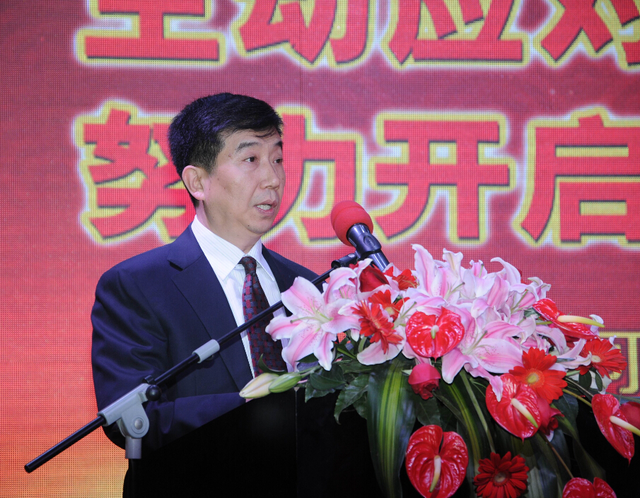姚紅專董事長(zhǎng)、苗立總經(jīng)理為2014年度被評(píng)為“銷售明星”的人員頒獎(jiǎng)