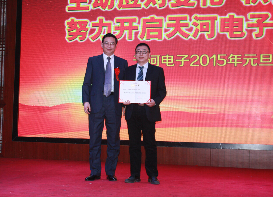2014年12月31日下午4時(shí)整,天河電子2015年元旦晚會(huì)在星光大酒店二樓場(chǎng)鑫軒隆重舉行,大會(huì)表彰了2015年度在市場(chǎng)、研發(fā)、工程等領(lǐng)域作出突出貢獻(xiàn)的優(yōu)秀團(tuán)隊(duì)和個(gè)人。公司總經(jīng)理苗立在會(huì)上做了重要講話,總結(jié)了2014年我們所做出的成績(jī)和不足,分析了公司目前所處的內(nèi)外形勢(shì),并為公司2015年的工作指明了方向。